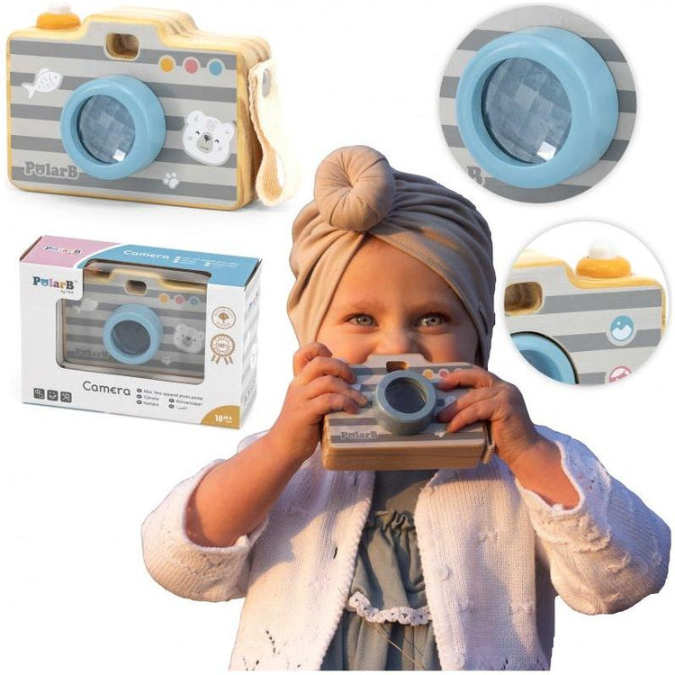 The Wooden Camera from the renowned Viga brand from the PolarB series is the perfect toy for young children who are beginning to learn about the world. Just hand it to your toddler and get ready to say "cheese!". The toy not only functions as a camera, but also as a kaleidoscope. Thanks to the beautiful pastel colours of the toy, it will attract your child's attention every time.