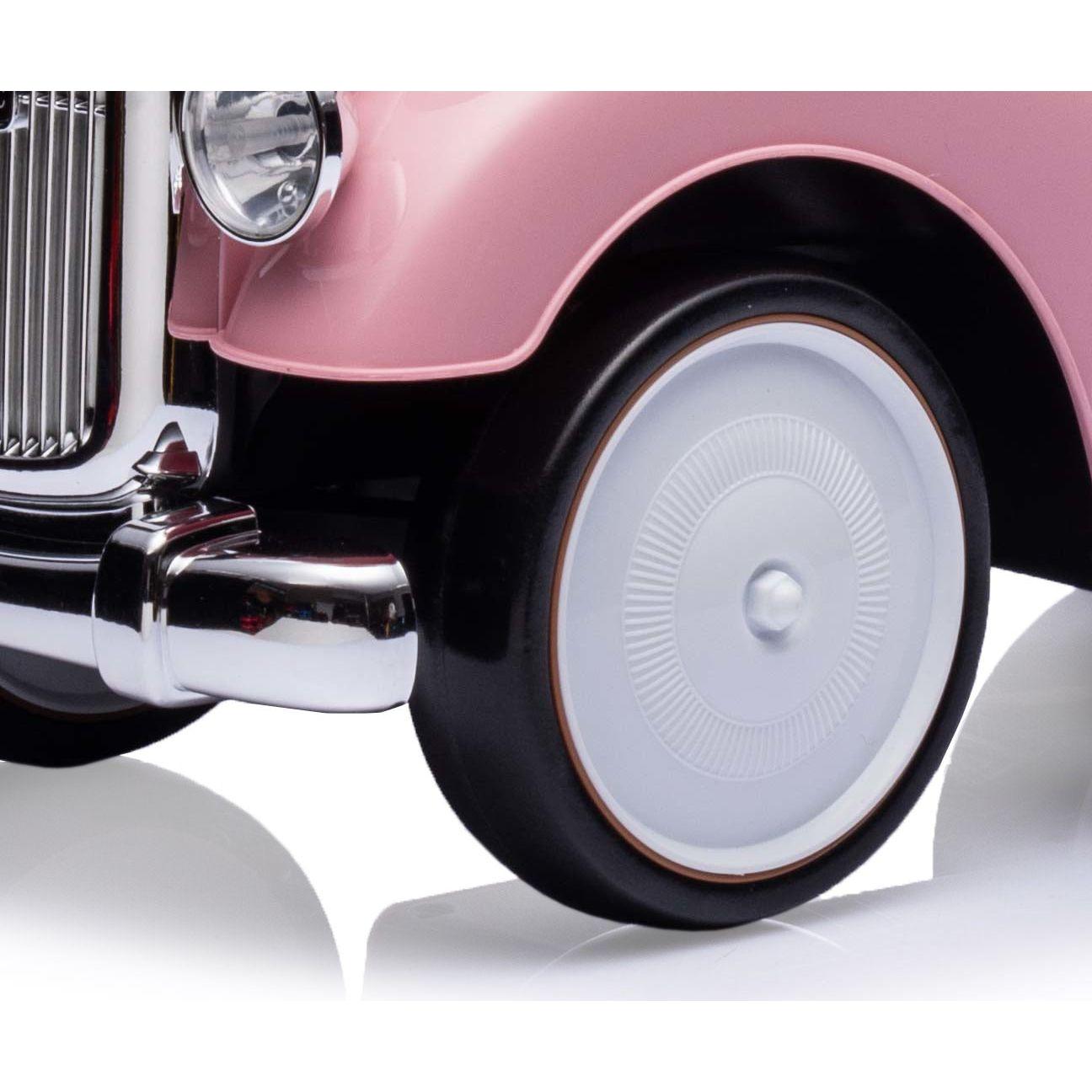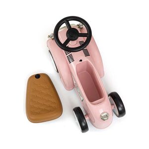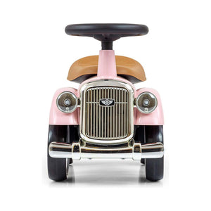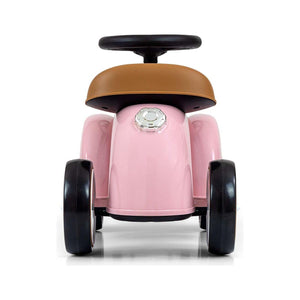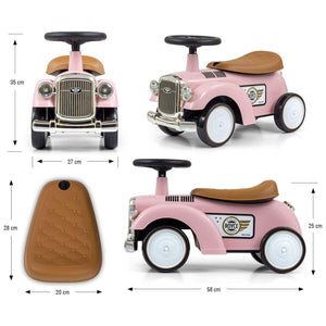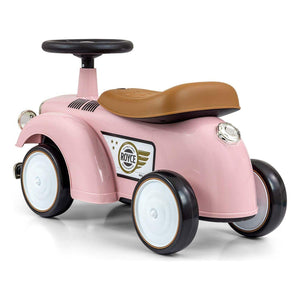 The Vintage Royce Ride On Car by Milly Mally invites the little traveller on a retro ride. It attracts with its eye-pleasing colours. The Royce vehicle is richly equipped. This little car has a steering wheel with sound and a contoured seat in a beautiful light brown colour. It provides your child with great driving fun and develops their sense of balance and general motor skills. The car has a lightweight plastic construction and ergonomic shapes, ensuring safe play for your child. The twisting steering wheel of our Royce rider allows for difficult manoeuvres at home and on walks. The wheels of this beautiful vehicle are made of soft EVA foam. Playing through motor activity is a great way to support the proper development of our children. The retro car can be used by your child as their first vehicle with a real steering wheel and horn, as well as a pushchair with an open storage compartment for toys (small boot), an imitation fuel filler on the back of the vehicle, and the front part of the car - the grill is in silver. The ROYCE logo adds to the aesthetics and prestige of this vehicle. The finishing touch to the Royce by Milly Mally ride-on is its gift box, which is kept in the character of retro vehicles from the early days of the automotive industry. The Royce vehicle is dedicated to all children who can sit up independently. The vehicle can be used both indoors and outdoors and will make your child's time out on a walk more enjoyable.