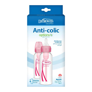 Dr. Brown's Anti-colic Options+ Narrow-Neck Bottle 250 ml 2-Pack - Pink
