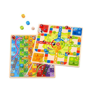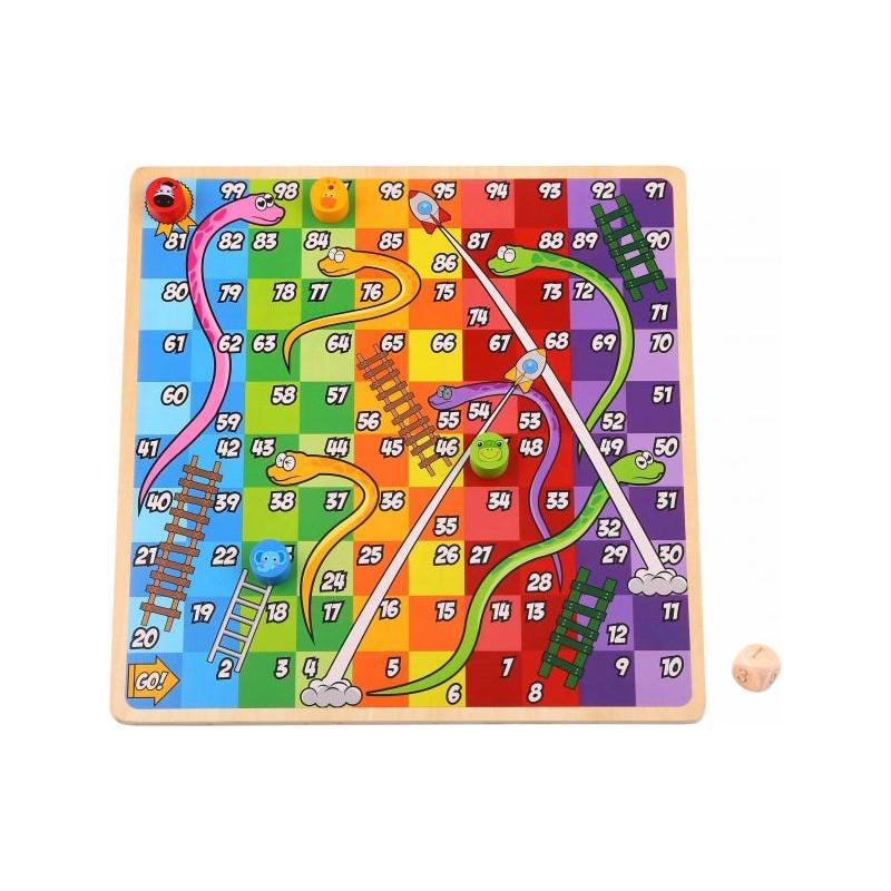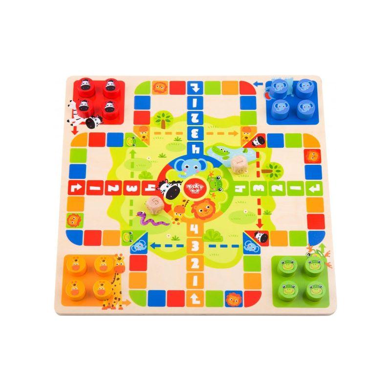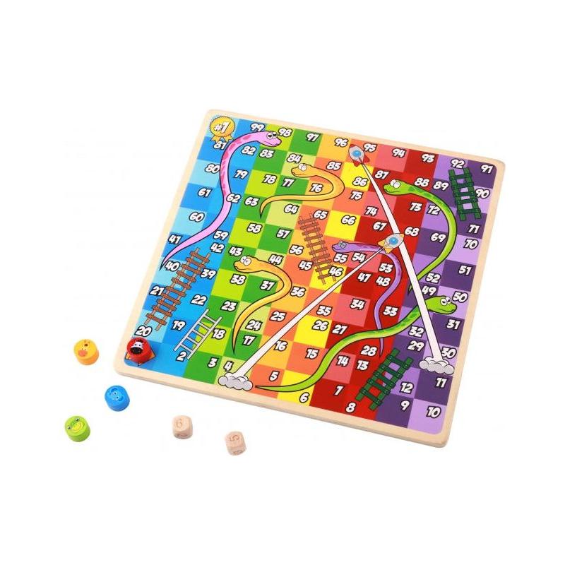 TOOKY TOY Het bordspel is een origineel 2-in-1 spel. Een perfect voorstel om tijd door te brengen met je gezin. Ludo en Snakes & Ladders zijn bekende spellen die urenlang plezier zullen opleveren. Tijdens het spelen zal het kind het vermogen verwerven om logisch te denken, te analyseren en het geheugen te verbeteren. Levendige kleuren en illustraties zorgen ervoor dat het spel de aandacht trekt van elk kind. De hele set is gemaakt van de hoogste kwaliteit materialen, waardoor het veilig is voor kinderen en het milieu.