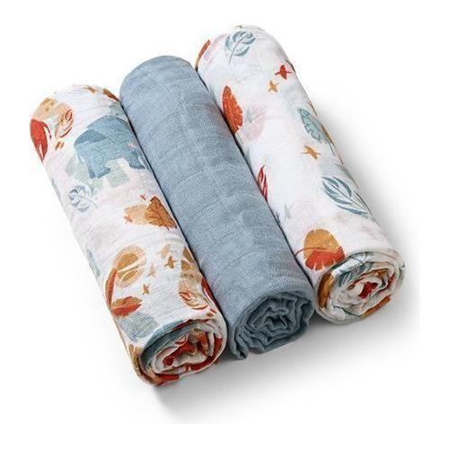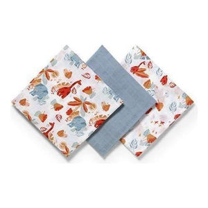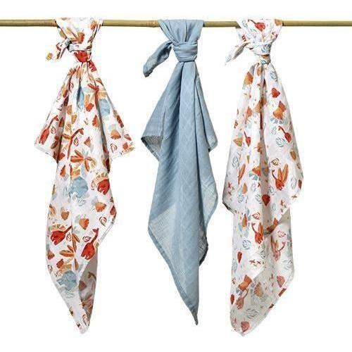 Babyono 100% Cotton Muslin Squares 3-Pack - Blue