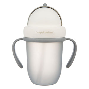 Modern and practical cup for independent drinking designed for toddlers over 9 months old. Useful at home, on a journey, or on a walk. Movable parts of the cap allow for an easy and convenient hiding of the straw, preventing uncontrolled spillage.