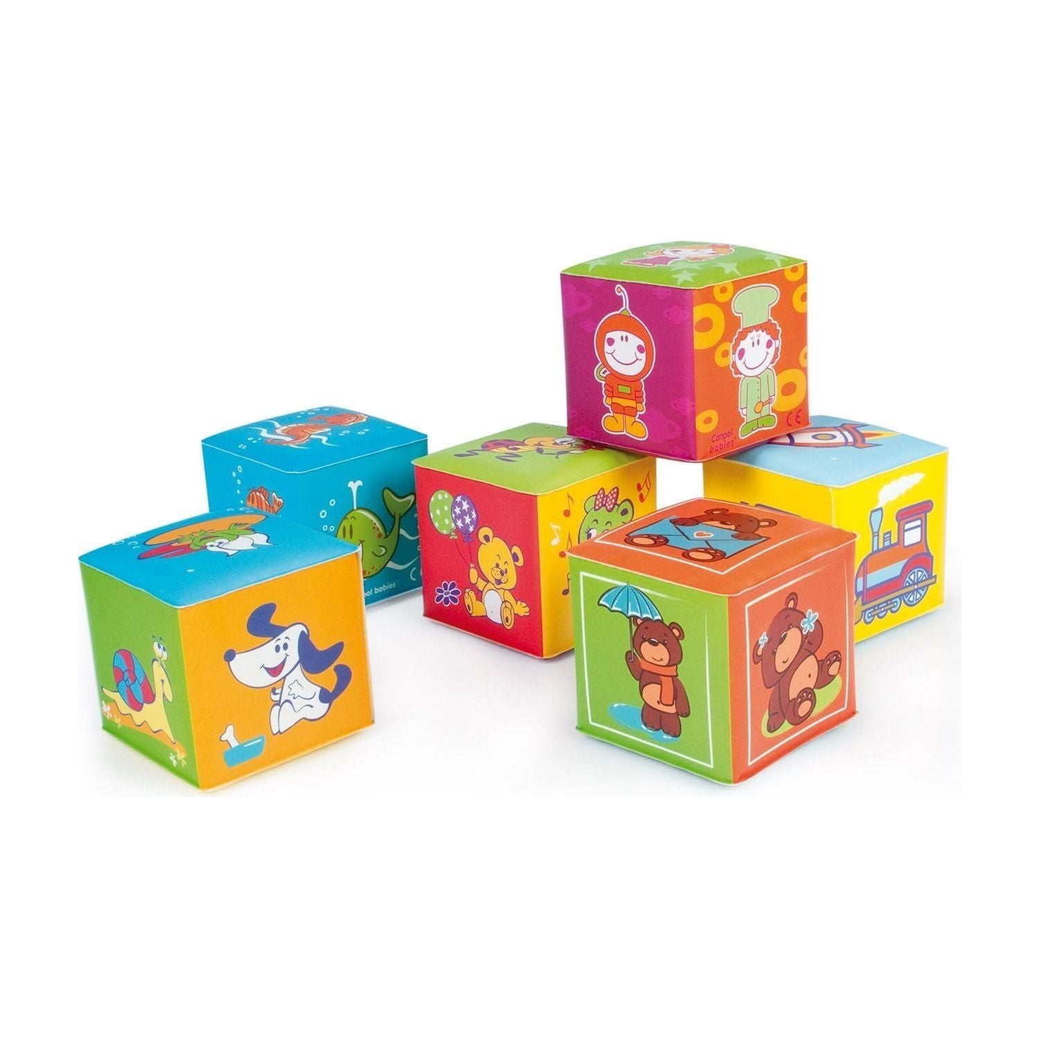 Soft, colorful squeeze activity blocks with fabulous illustrations will catch the attention of every child. Perfect for learning first words.