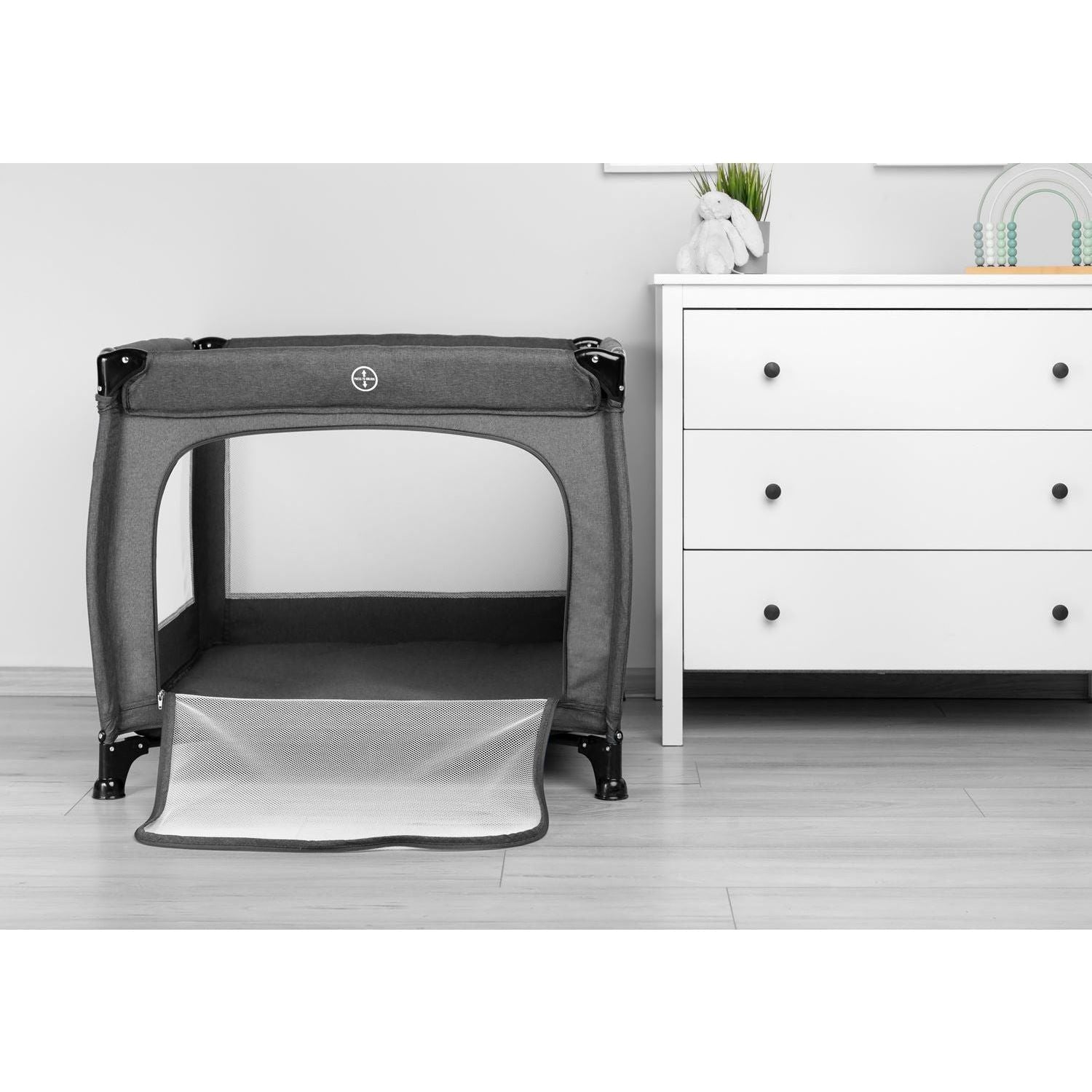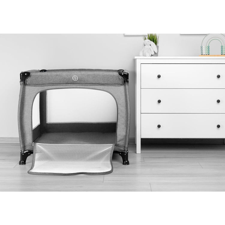 Quadra is a lightweight and practical square playpen. It is made of fabric and high-quality plastic, making it durable. Fitted with a mat, zipped door, and handles for learning to stand up. Quadra works perfectly as a play and resting place at home and on the go. Easy folding and a handy bag make it easy to transport the playpen.