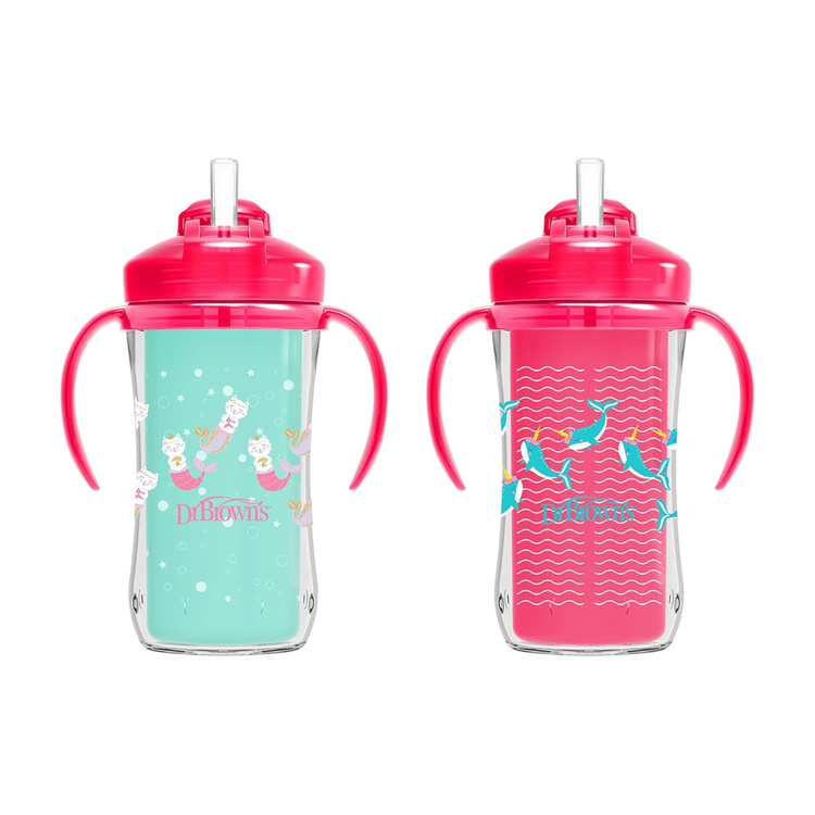 Dr. Brown's Insulated Sippy Straw Cup 12m+ - 2 Colours perfect 2 pack set for a Girl.