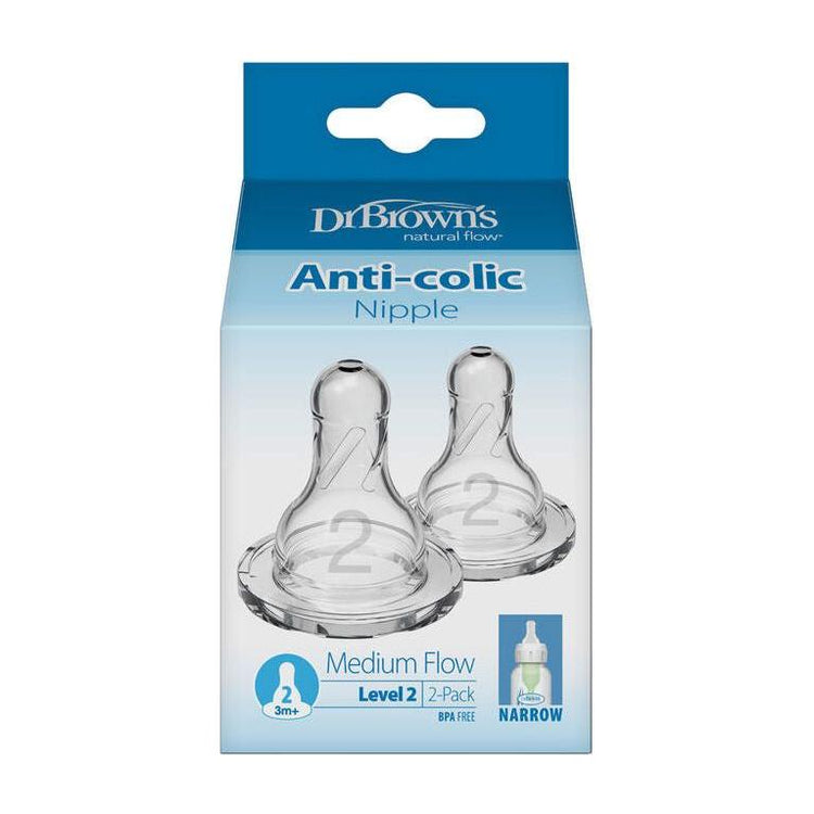 - Dr. Brown's Narrow-Neck Level 2 Natural Flow Teats 3M+, 2 Pack