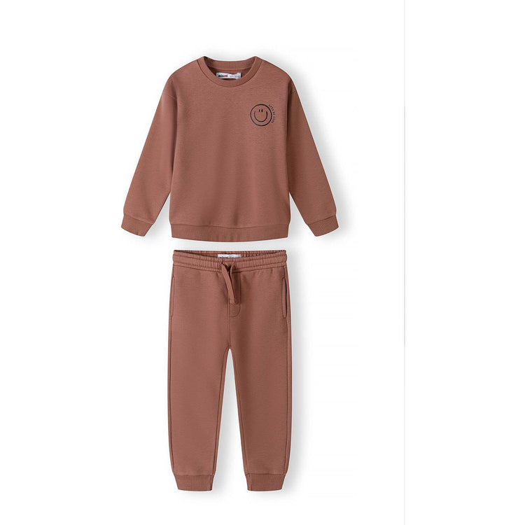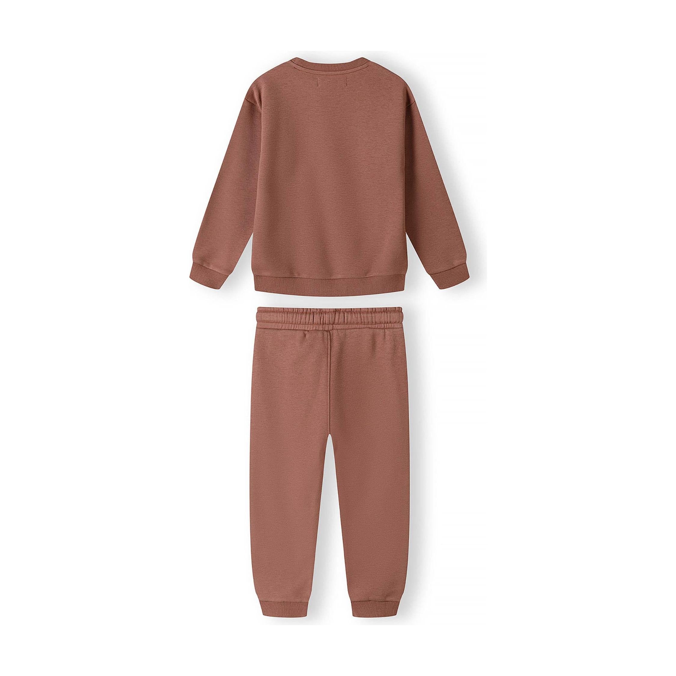 Minoti Fleece Crew Top and Jogger Set - Chestnut