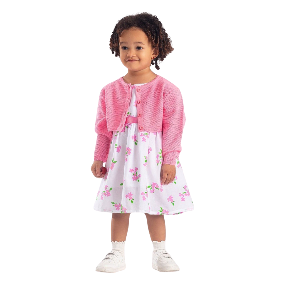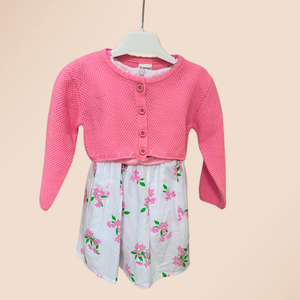 Gamzelim Baby Dress With Cardigan - Pink Flowers