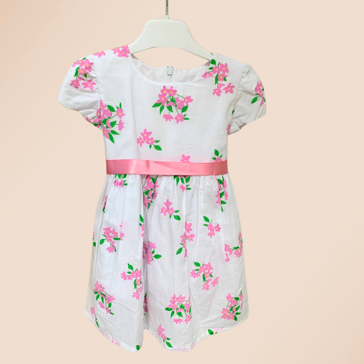 - Beautiful short sleeve dress with a flower motif ideal for every little girl
