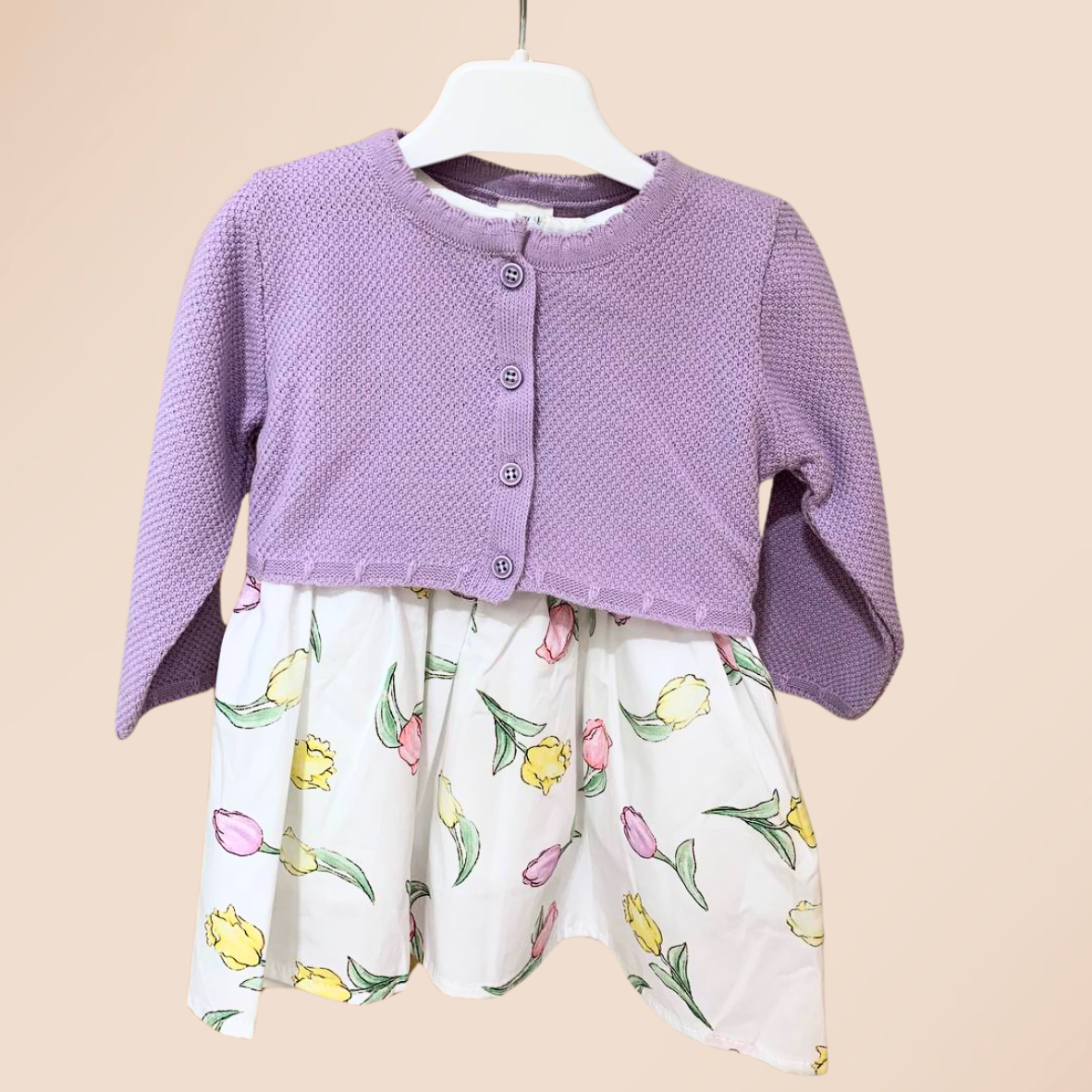 Gamzelim Baby Dress With Cardigan - Violet Tulips