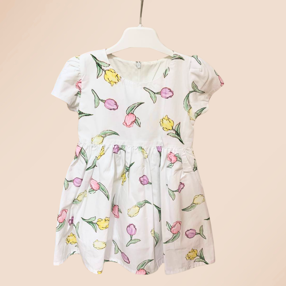 - beautiful short sleeve dress with a tulips motif ideal for every little girl