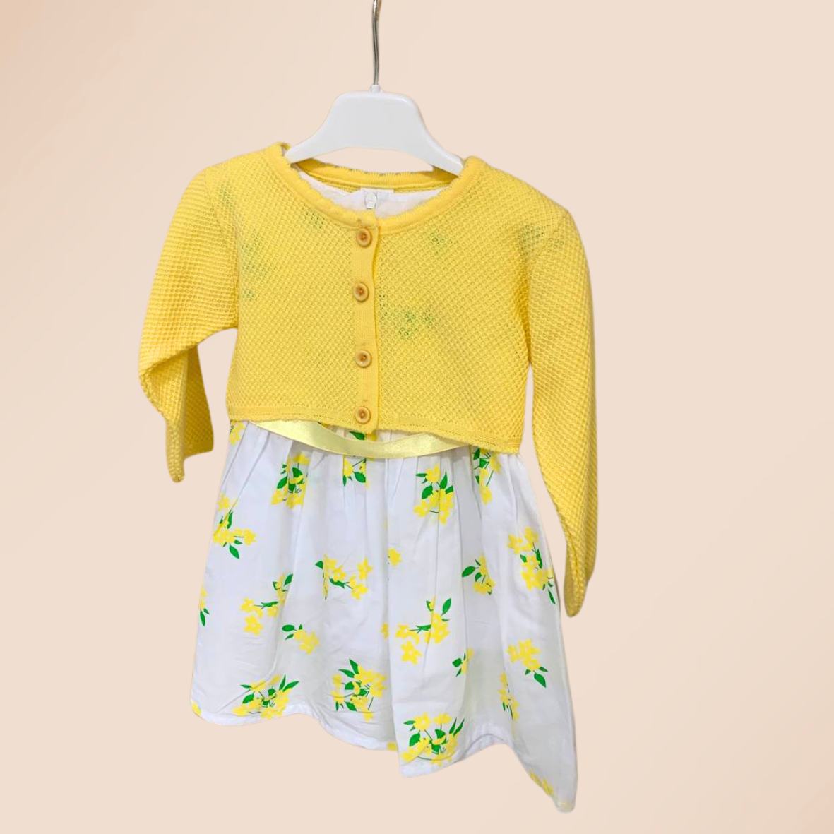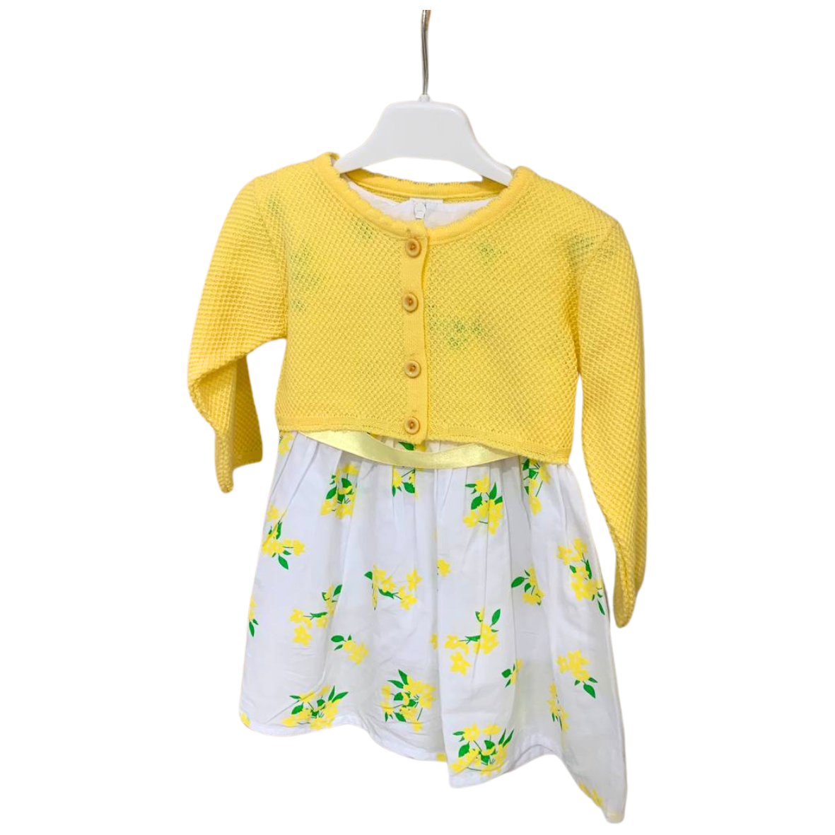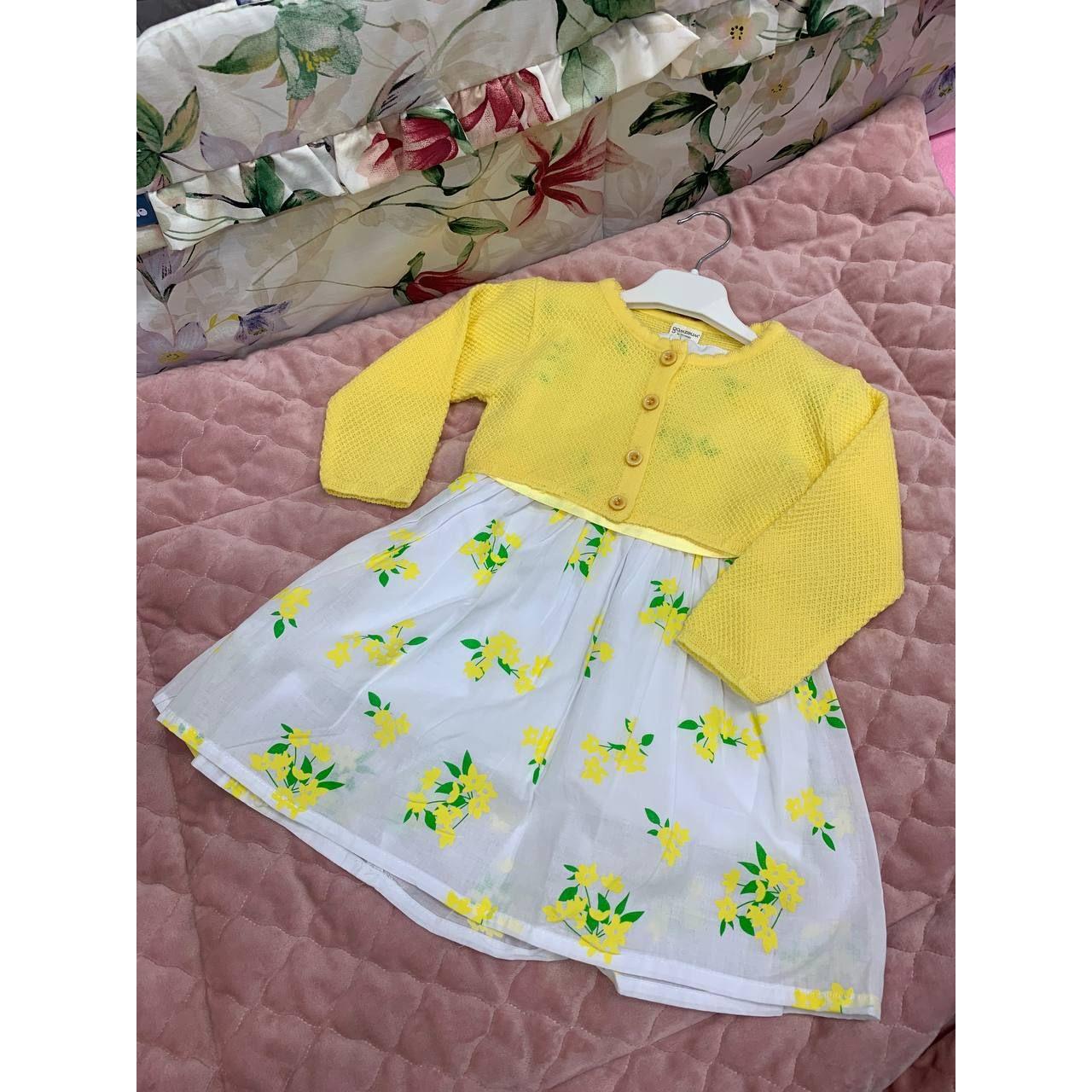 Gamzelim Baby Dress With Cardigan - Yellow Flowers