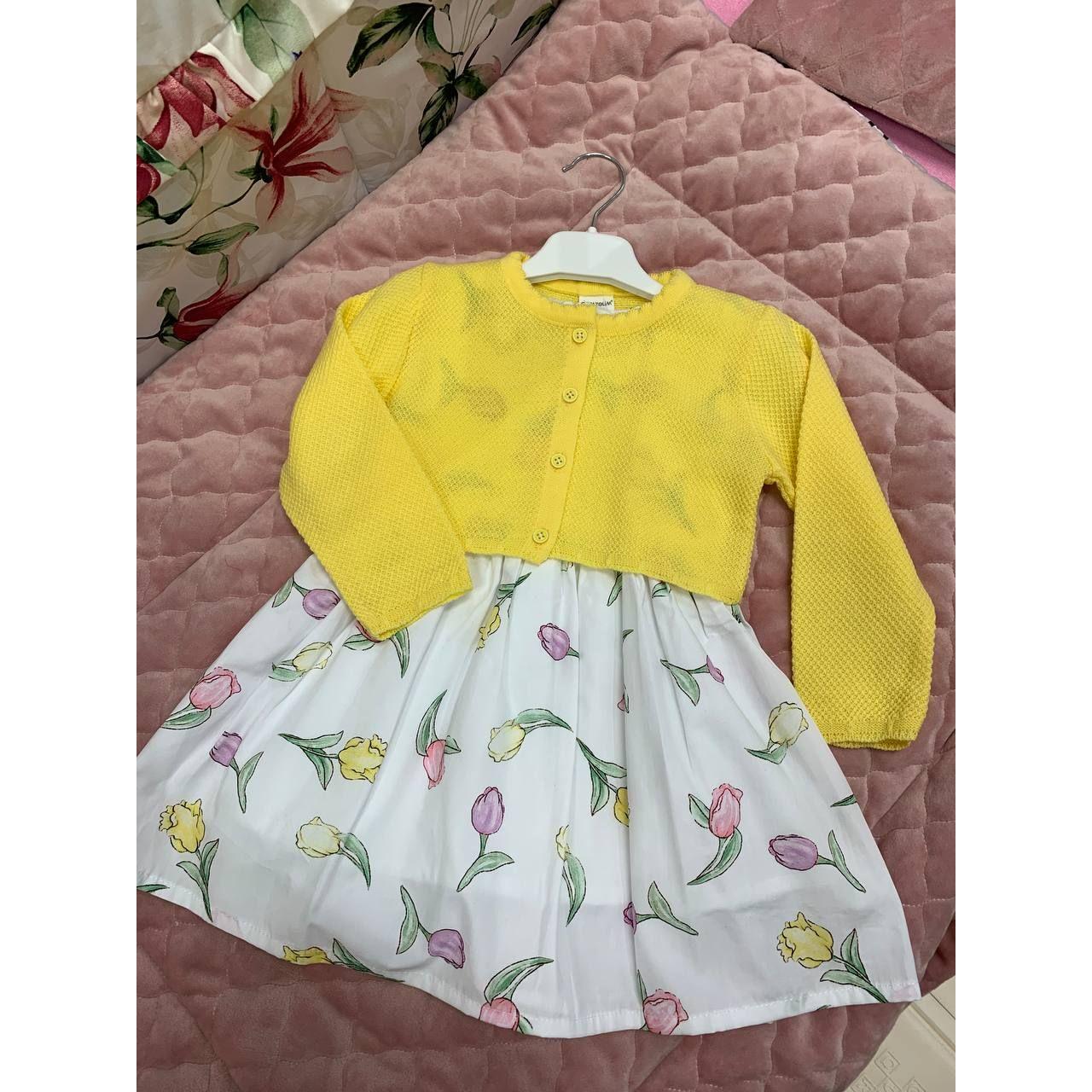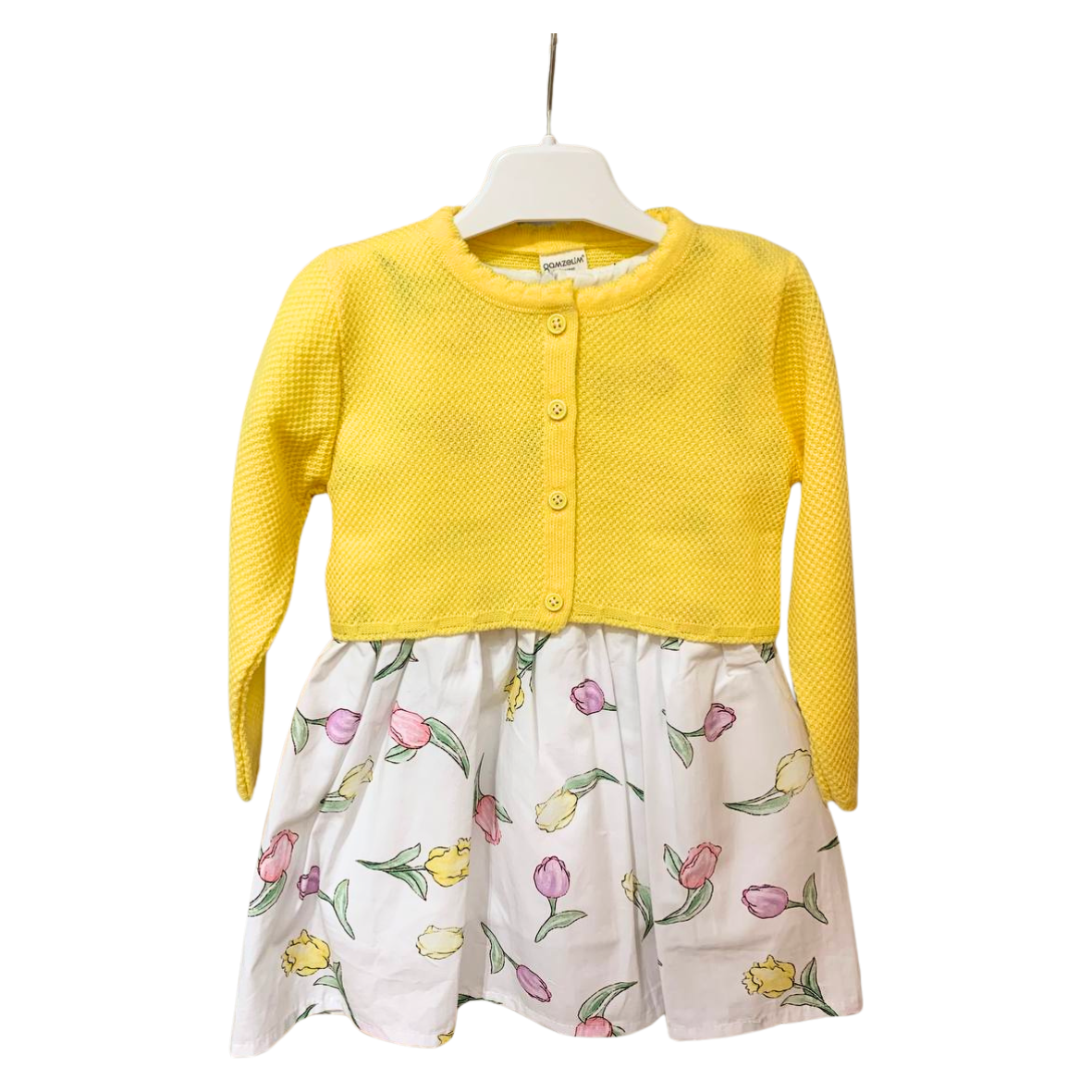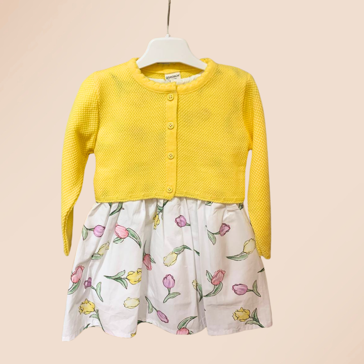 Gamzelim Baby Dress With Cardigan - Yellow Tulips
