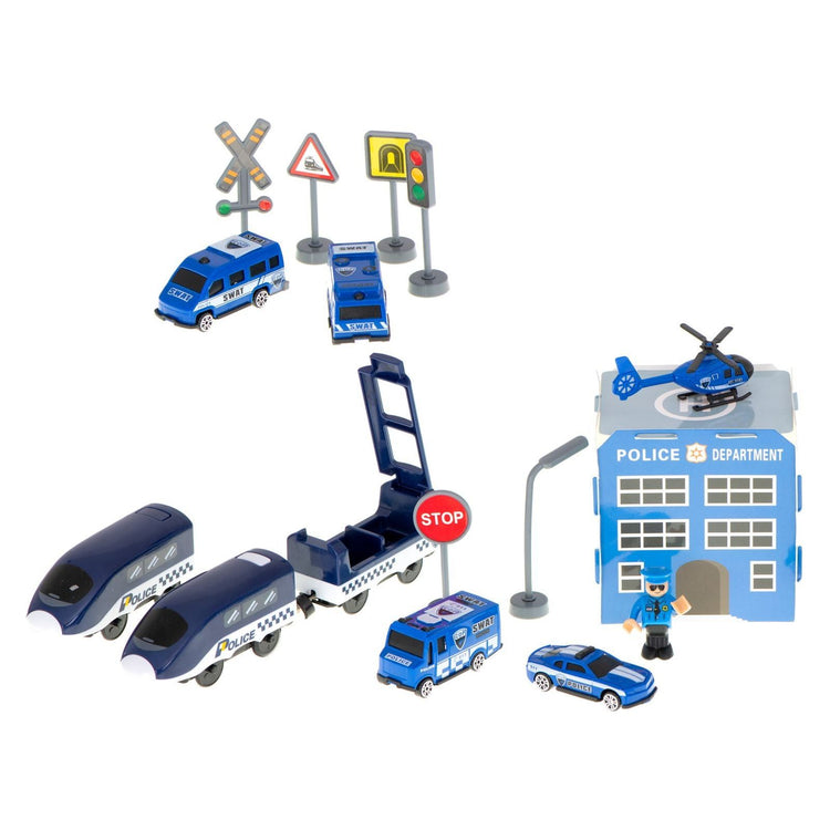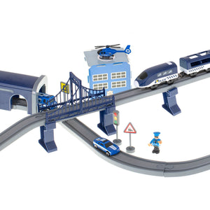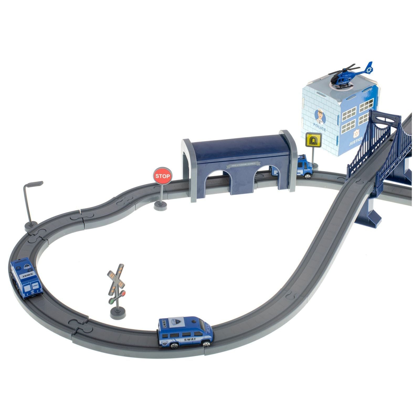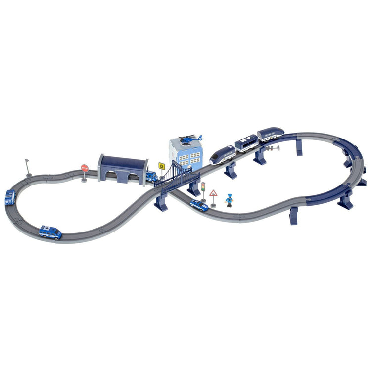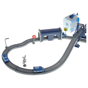 The track with train and cars will provide your child with fun for hours. From building fancy constructions to playing out crazy chases after the bad guys!