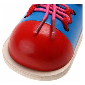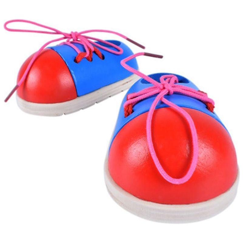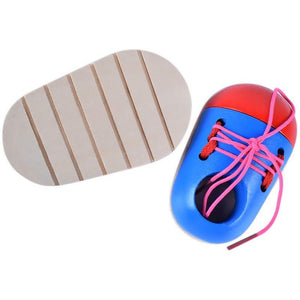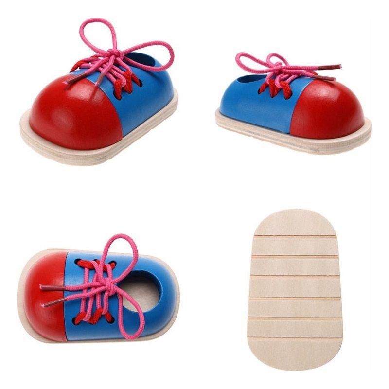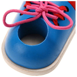 A fantastic educational toy to learn how to tie shoelaces. All made of wood.