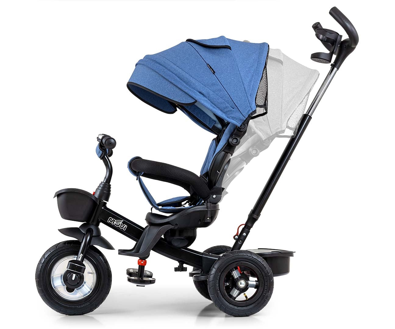MOVI is stable and safe, it has a modern design, a comfortable contoured seat rotated by 360 degrees, which enables forward or backward travel. The bike is equipped with a safety railing to prevent the child from falling off, a three-point safety belt and footrests, and the inflatable wheels ensure a quiet and comfortable ride. With the removal of the handle, safety rails, canopy and seat cover, MOVI can be used as a tricycle. Thanks to the "free wheel" function, the child can pedal freely and the handlebars for the parent can still correct the speed of movement.