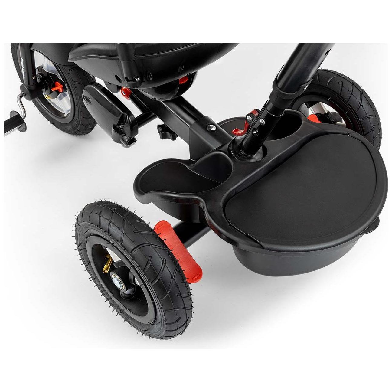 Smooth, quiet ride thanks to inflatable wheels and ball-bearing rear wheels