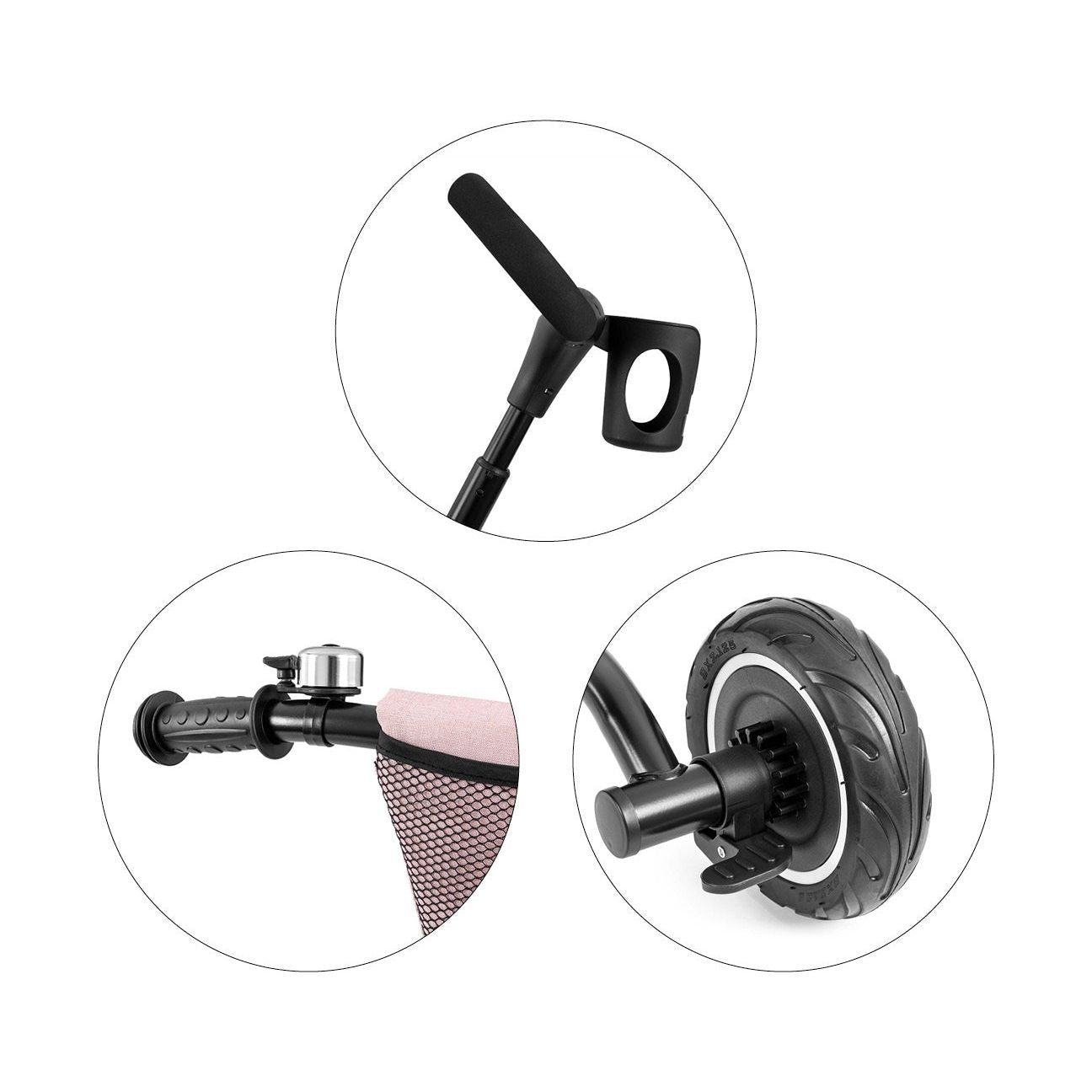 The foldable canopy shields your child from the sun, while a rear storage basket, handlebar bag, and parent cup holder keep essentials close. -