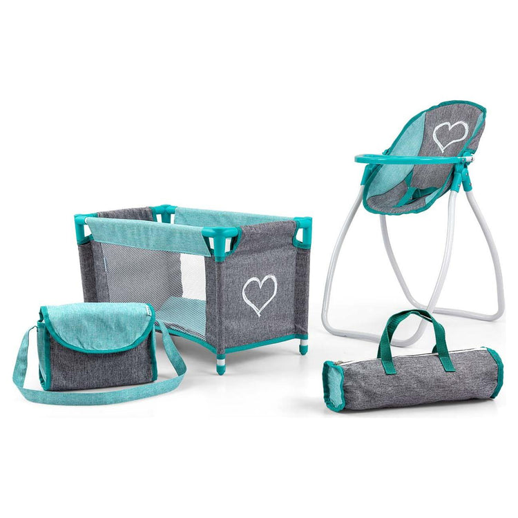 Once the doll is asleep in the crib, it will be the turn to feed her in the highchair, and for fun you can rock her on the swing. For the road, a shoulder bag for the necessary accessories for even the most demanding toy is sure to come in handy.
