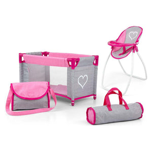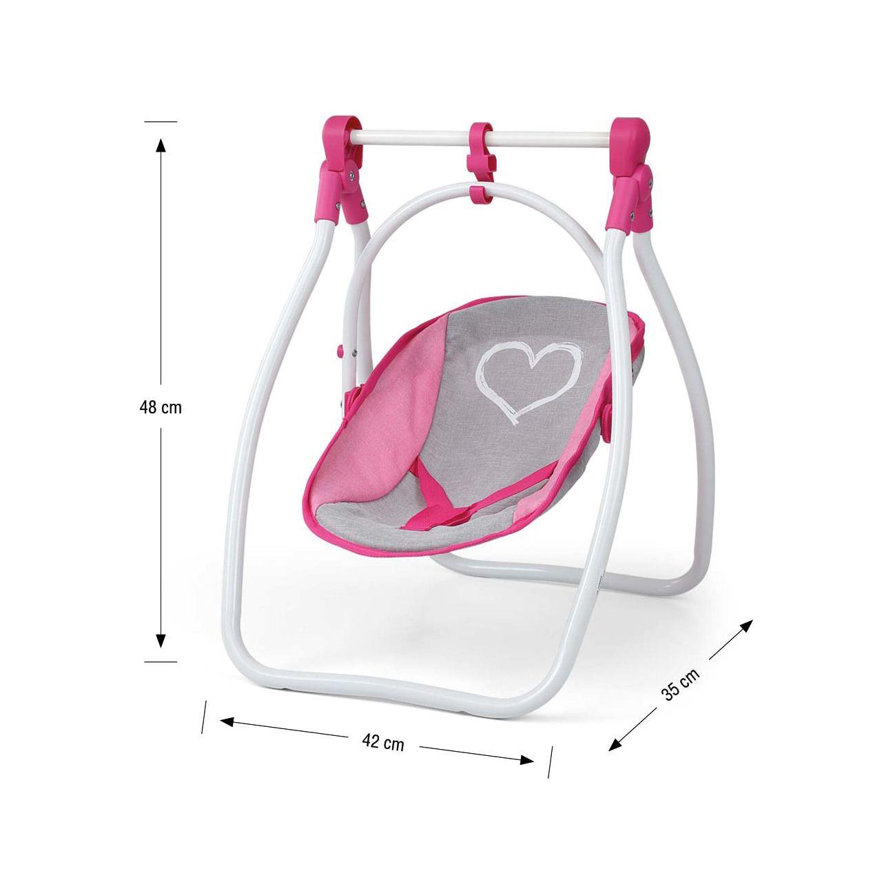 Once the doll is asleep in the crib, it will be the turn to feed her in the highchair, and for fun you can rock her on the swing. For the road, a shoulder bag for the necessary accessories for even the most demanding toy is sure to come in handy.