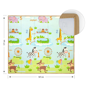 Are you looking for a mat, a floor for a tent, a foldable rocker to be used on the swimming pool, a playmat for a garden party, a picnic blanket and/or a beach mat? Believe it or not, this kids playroom flooring fulfils all these functions! Its reversible, mellow, warm and anti-slipping structure allows not only for lying but for first attempts of sitting and developing motor skills.