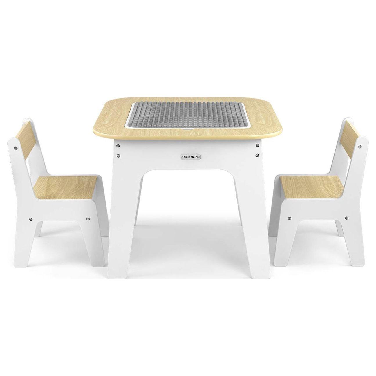 - Dual-purpose tabletop: One side is designed for building blocks (compatible with popular children's block brands, suitable for kids aged 18 months+), and the other side features a smooth surface perfect for drawing or writing with chalk