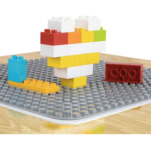 - Removable Tabletop: 40 cm x 40 cm (one side with building block ridges, the other smooth for chalk drawing)