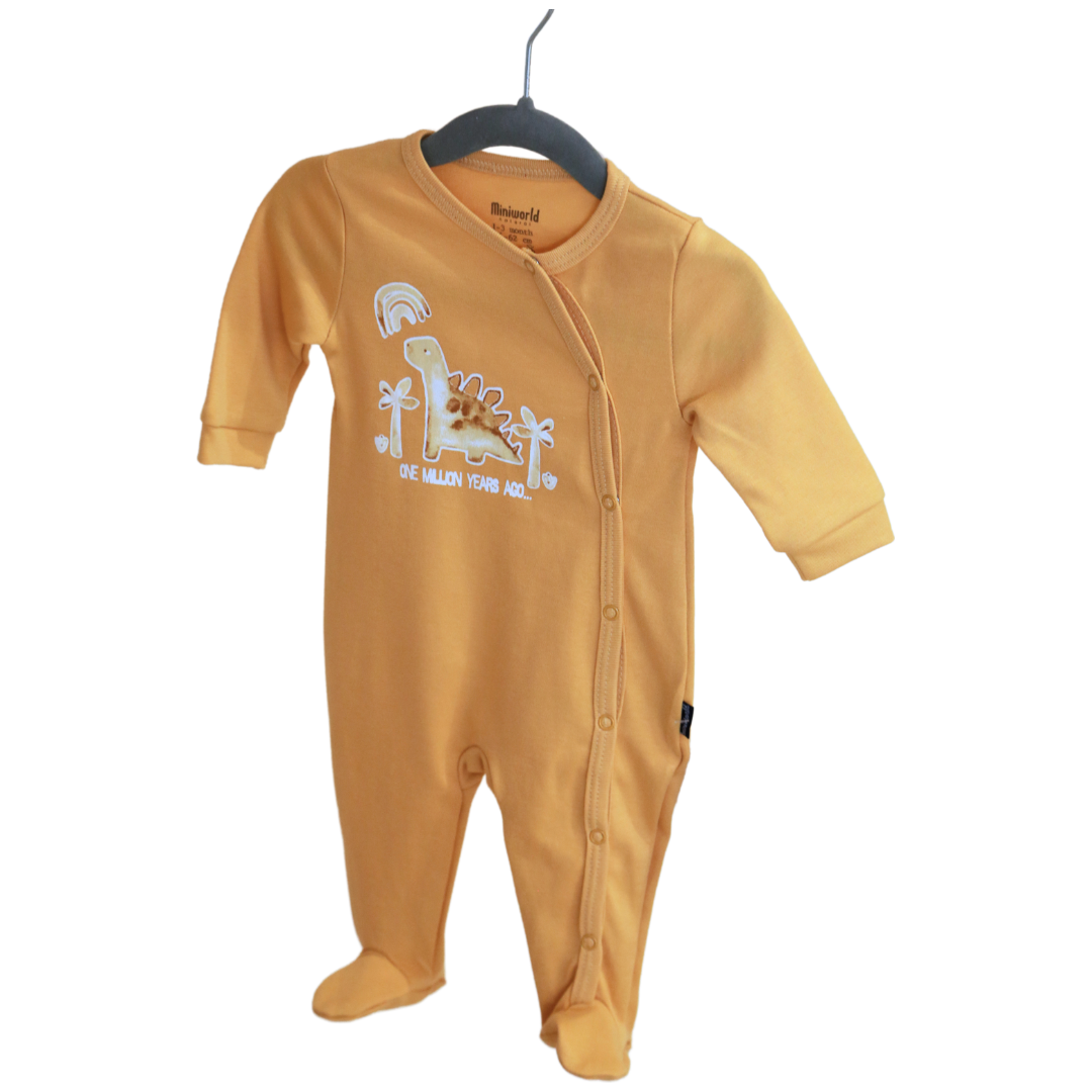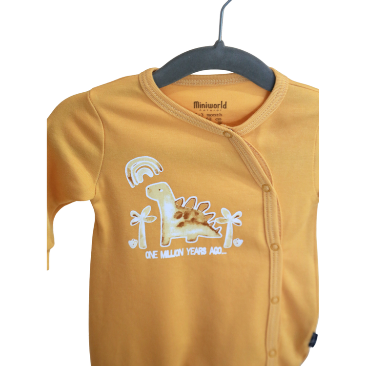 Miniworld - Yellow Dinosaurs Babygrow - Yellow (1-6 MONTHS)