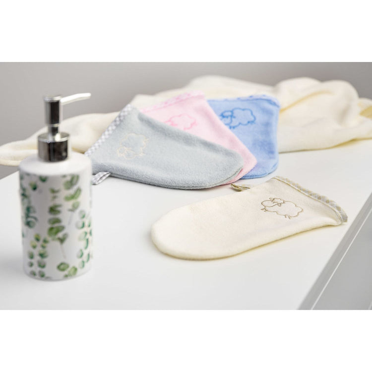 The baby wash mitt is indispensable in the daily care and bathing of the baby. Spacious glove (about 23×14 cm) will be perfect for gentle washing of hands and face, as well as for crazy games during the evening bath. The child's attention will surely be attracted by the cute sheep embroidered on the top of the glove.