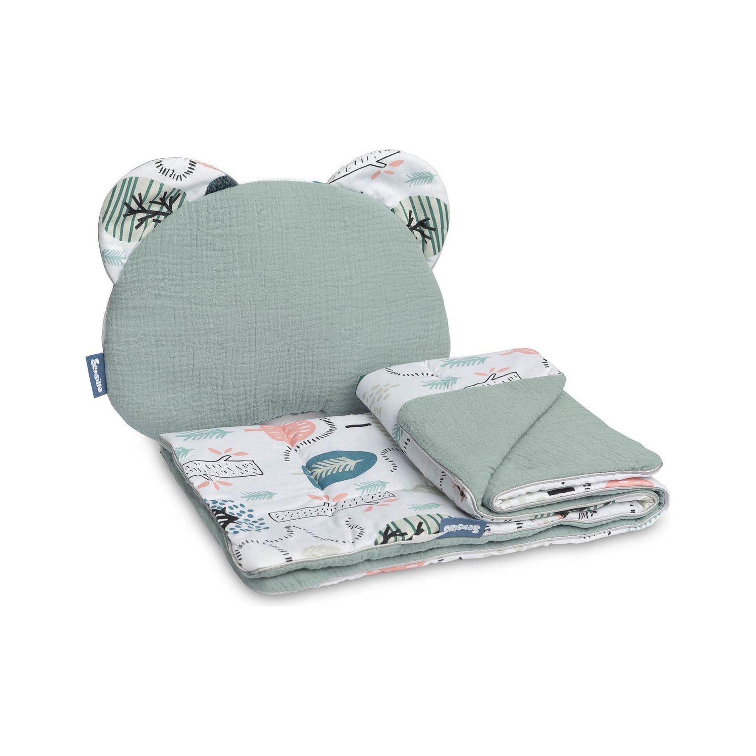 Sensillo Muslin Pram Set - Green Hedgehogs