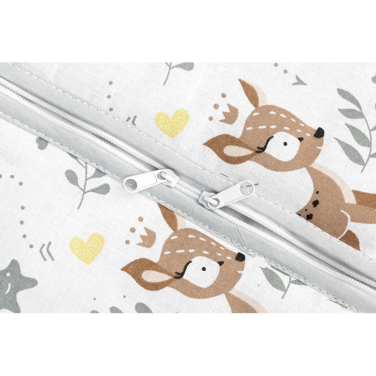 Sensillo Sleeping bag in size M will serve older children (9-18 months) providing them with warmth and safety. It is made of soft cotton filled with lining. It contains no hard parts that could irritate the baby's skin. The sleeping bag is equipped with a double-sided zipper, secured at the neck, allowing you to change the diaper without taking the child out of the sleeping bag. Match the product with other products from the same collection and create your own set.