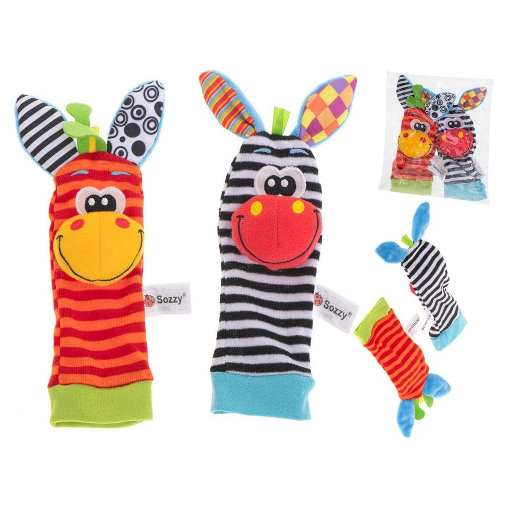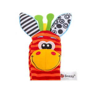 The socks providing the right temperature, in addition, the sound made by the rattle intrigues the toddler, stimulating to lift the legs and teaching the principle of "cause-effect".