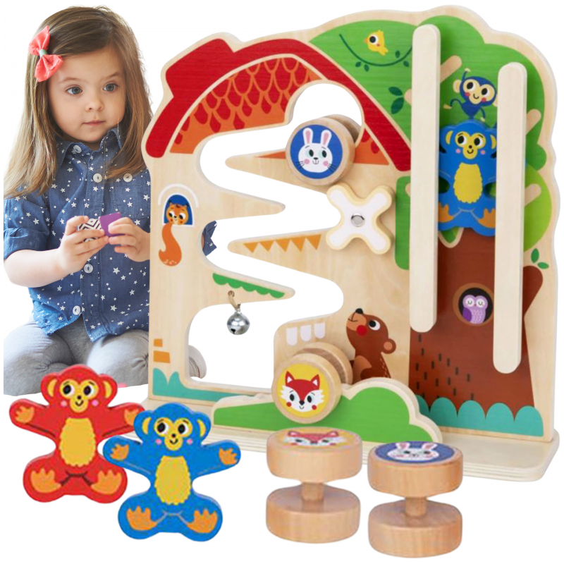 The 2-in-1 wooden manipulative board from TOOKY TOY brand is an educational toy designed for endless hours of fun. It will be perfect for practicing finger dexterity. It includes a bell that generates sounds and stimulates the development of listening skills.