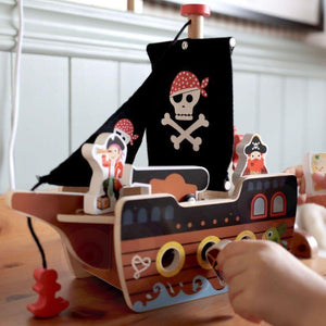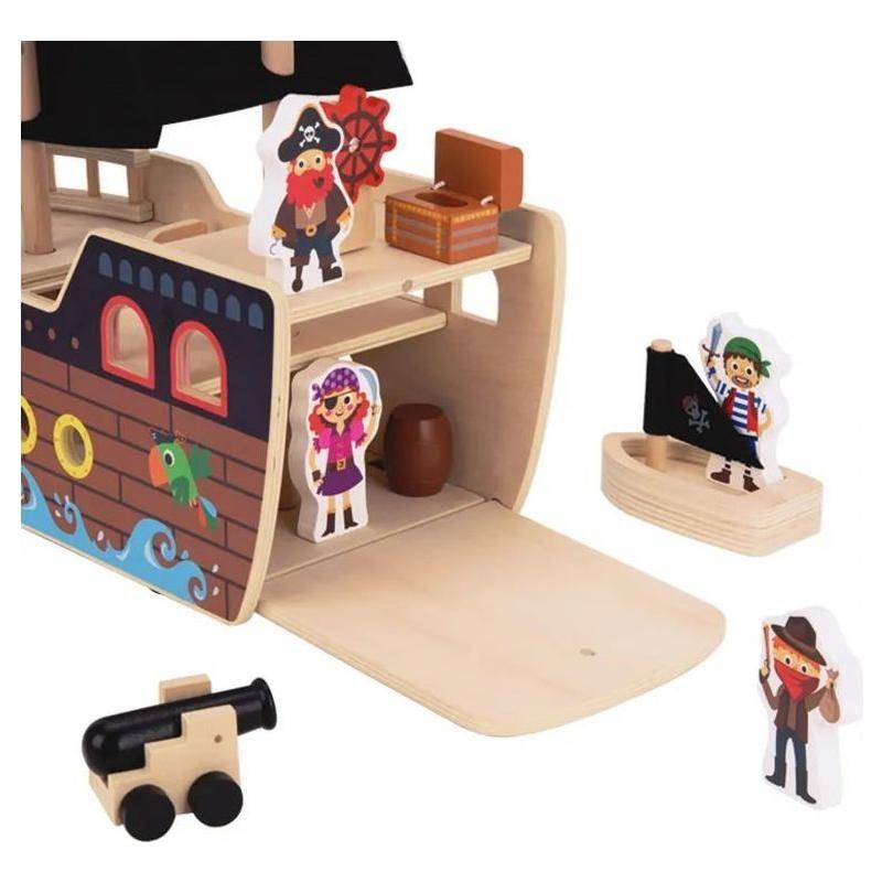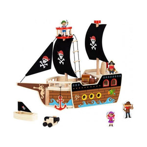 Develop your child's imagination with this fantastic Pirate Ship from Tooky Toy, which will allow them to take on the roles of intrepid pirates and create amazing adventures. Let your kids guide the ship, lower the anchor, use the cannon against enemies and search for hidden treasure. Will they succeed? The limits are in the realm of imagination. The pirate ship is made of high-quality, durable wood to ensure durability and longevity during countless pirate adventures. Its sturdy construction allows it to withstand even the most demanding adventures, providing an unforgettable play experience.