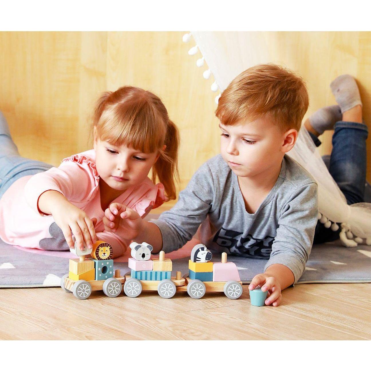 The wooden train with moving cars is an interesting toy that develops the child's motor coordination and brings a lot of fun.