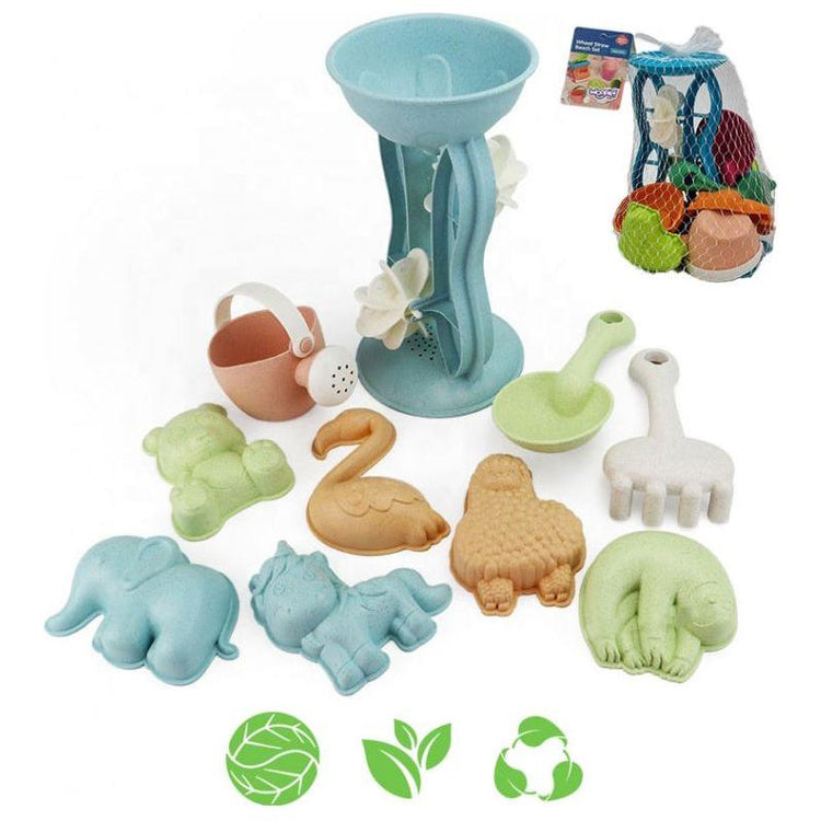 The Sand Set with Reel from the WOOPIE brand in the GREEN series is a great addition to the sandbox or even the garden. The set contains 10 pieces: reel, watering can, 6 moulds, shovel and rakes. The bucket and watering can have a convenient carrying handle. The set has a trendy pastel design and is made of organic and biodegradable (self-degrading) material. In addition, it is compostable. The product is safe for children - disinfected at 120 °C. Guaranteed super play in the sandpit, on the beach or even in the garden! An environmentally friendly product!